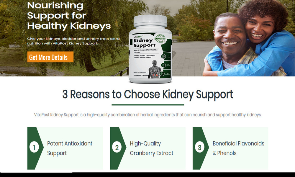 How to maintain kidney health Using Birch Leaf, Java Tea & Goldenrod Birch leaf provides significant antioxidant potential due to a variety of naturally present phenols and flavonoids. Goldenrod is a traditional beneficial plant, and science has recently discovered it contains the flavonoids rutin and astragalin. Rutin is known for supporting the kidneys. Java Tea (Cat’s Whiskers Tea) is a herb from tropical South East Asia that contains flavonoids and other beneficial compounds. The combination of Birch Leaf, Goldenrod and Java Tea has been shown to support a healthy urinary tract.6-10 Unlock the Secret to Healthy Kidneys Your kidneys are essential to your overall well-being. Don't take them for granted! Introducing our groundbreaking solution - Maintain Healthy Kidneys. This revolutionary formula is scientifically designed to support your kidney health, helping you live life to the fullest. With Maintain Healthy Kidneys, you can say goodbye to worries about kidney function and embrace a vibrant, energetic lifestyle. Our carefully selected blend of natural ingredients works synergistically to cleanse and nourish your kidneys, promoting optimal functioning. Don't let kidney health hold you back - take control with Maintain Healthy Kidneys. Experience the difference today! How to Keep good kidney Function With Astragalus & Buchu Leaf Also known as Huang Qi, Astragalus is widely used in traditional Chinese systems for supporting the kidneys. Scientific research has shown promise for the use of Astragalus to provide support for proteinuria, along with other related side-benefits.11 Buchu leaf is a shrub from South Africa that has sweet leaves which are used for flavoring teas. It is thought to have 'adaptogenic' properties and has a reputation for supporting the urinary tract and kidneys. Buchu leaf reportedly smells like peppermint and tastes like blackcurrant.12 Unlock the secret to healthy kidneys Introducing our revolutionary product, Maintain Healthy Kidneys! If you're looking to take control of your kidney health, look no further. Our specially formulated solution is designed to support and maintain optimal kidney function. With Maintain Healthy Kidneys, you can finally say goodbye to worries about your kidney health. Our powerful blend of natural ingredients works harmoniously to cleanse and detoxify your kidneys, promoting overall wellness. Don't wait until it's too late! Start taking care of your kidneys today and experience the difference with Maintain Healthy Kidneys. Your kidneys deserve the best! Support Your Kidney Health Nutritionally People think the only thing they can give their kidneys is water, but they really have complicated nutritional needs. Your kidneys are crucial to your overall health. Supports Healthy Kidneys Many of the ingredients in VitaPost Kidney Support have shown promise in supporting the kidneys themselves; these include Astragalus, Rutin and Juniper. Antioxidants are especially helpful to support the kidneys against oxidative stress.13 Unlock the Secret to Healthy Kidneys Your kidneys are the unsung heroes of your body, quietly working day and night to keep you healthy. But are you taking care of them? Introducing Maintain Healthy Kidneys, the ultimate solution for optimal kidney function. With our carefully formulated blend of natural ingredients, Maintain Healthy Kidneys is designed to support and nourish your precious kidneys. Say goodbye to worries about kidney health and hello to a vibrant, energetic life. Don't wait until it's too late! Protect your kidneys with Maintain Healthy Kidneys today and experience the difference in your overall well-being. Live life to the fullest with confidence, knowing that your kidneys are in top shape! Supports the Bladder and Urinary Tract The VitaCran® in Kidney Support provides proanthocyanidins that limit the action of bacteria, which is beneficial to the normal functioning of the urinary tract. The urinary tract leads to the kidneys and is a potential road for bacteria, so in order to support your kidneys it’s very important to maintain your urinary tract health.1-5 Unlock the Secret to Optimal Kidney Health Introducing our revolutionary product - Maintain Healthy Kidneys! As we all know, kidney health is vital for overall well-being, and now you can take control of it with ease. Our specially formulated blend of ingredients supports healthy kidney function, resulting in a happier and healthier you. Don't let kidney issues hold you back from living your best life. With Maintain Healthy Kidneys, you can say goodbye to worries and hello to a vibrant future. Trust in our product to nourish and protect your kidneys, so you can focus on what truly matters - enjoying life to the fullest. Join countless satisfied customers who have experienced the remarkable benefits of Maintain Healthy Kidneys. Don't wait any longer - invest in your kidney health today and unlock a world of wellness! Antioxidant Support For Maintaining kidney health 'Orac' stands for Oxygen Radical Absorbance Capacity, and is a measure of the potency of a food's antioxidant potential. The Proprietary Blend of ingredients in VitaPost Kidney Support includes many kinds of fruits and vegetables that are known for their antioxidant properties.14 Unlock the secret to healthy kidney function {ntroducing our revolutionary product, "How To Maintain Healthy Kidneys". If you're looking to support your kidney health and maintain optimal function, look no further. Our powerful formula is specially crafted with precision to provide your kidneys with the care they deserve. Experience the peace of mind that comes with knowing your kidneys are being taken care of. Our expertly selected ingredients work synergistically to promote healthy kidney function and support your overall well-being. Don't let anything hold you back. Embrace a life filled with vitality and take control of your kidney health today. Trust "Maintain Healthy Kidneys" - because you deserve noth